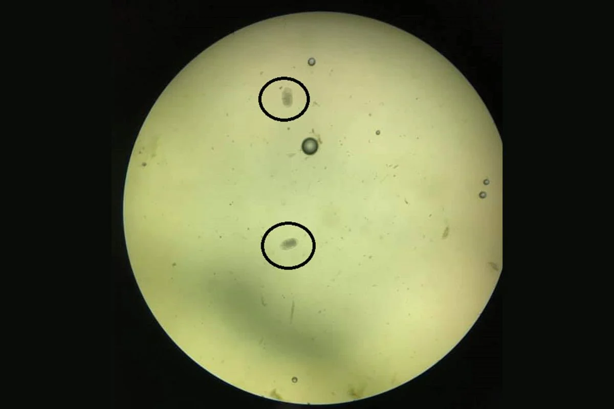 Strongyle eggs under microscope during faecal egg count (FEC)